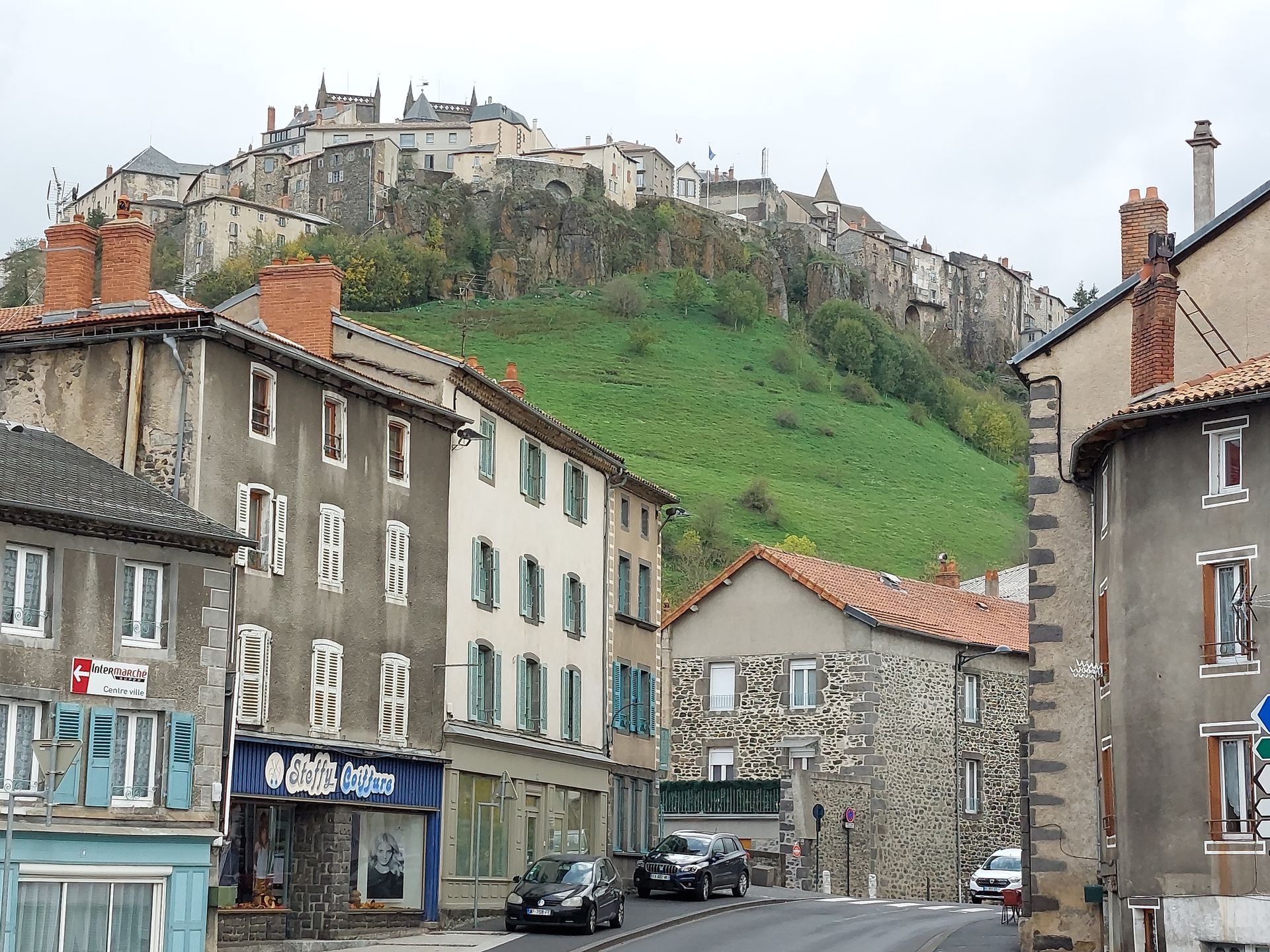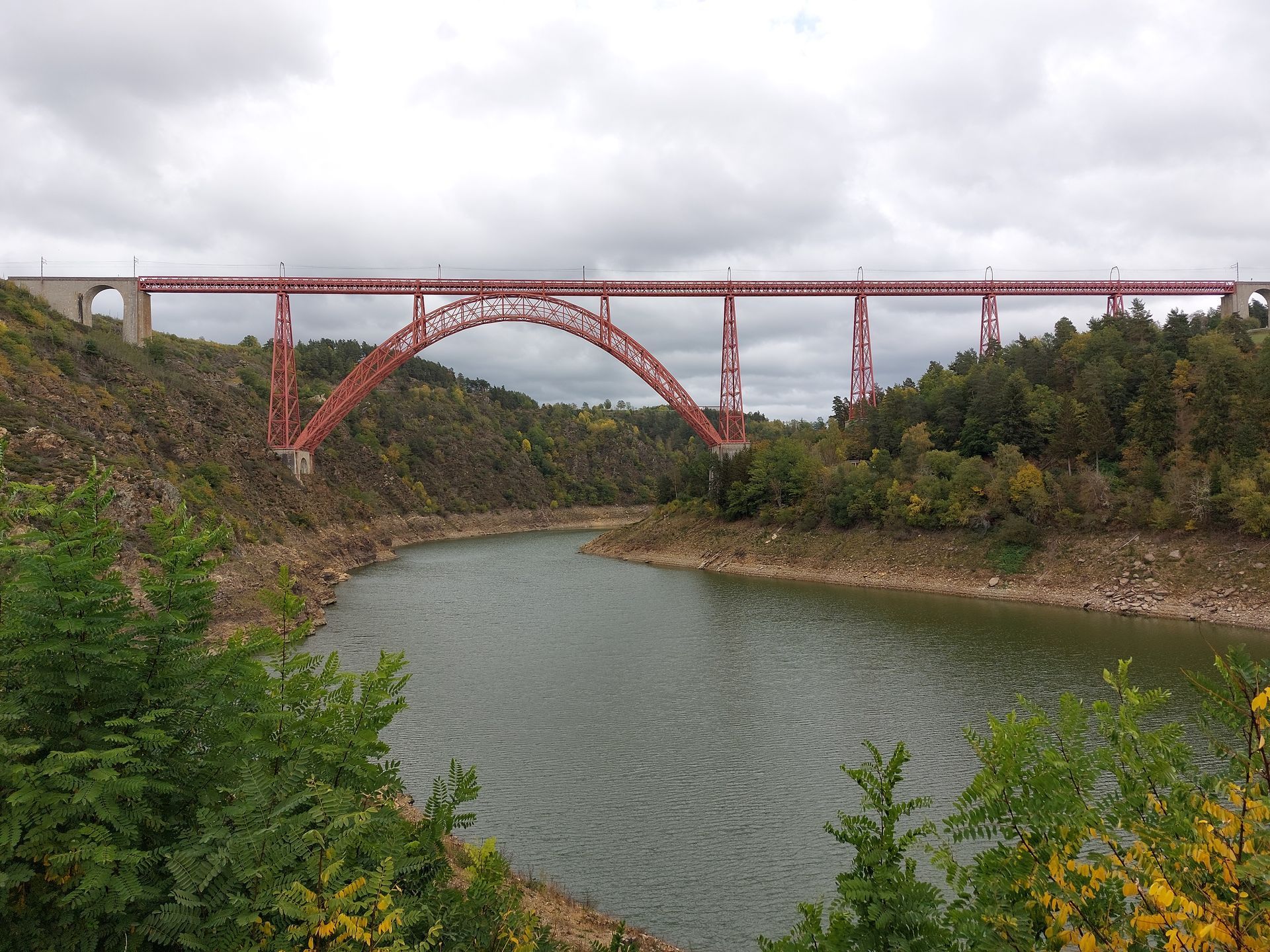 We continue south, past some smaller puys and maars (volcanic lakes). The path takes us through several medieval towns, some with impressive views. Finally we reach the Truyer gorges and the famous Garabit viaduct. (Who could have been the designer?) Then we go straight to the hotel.